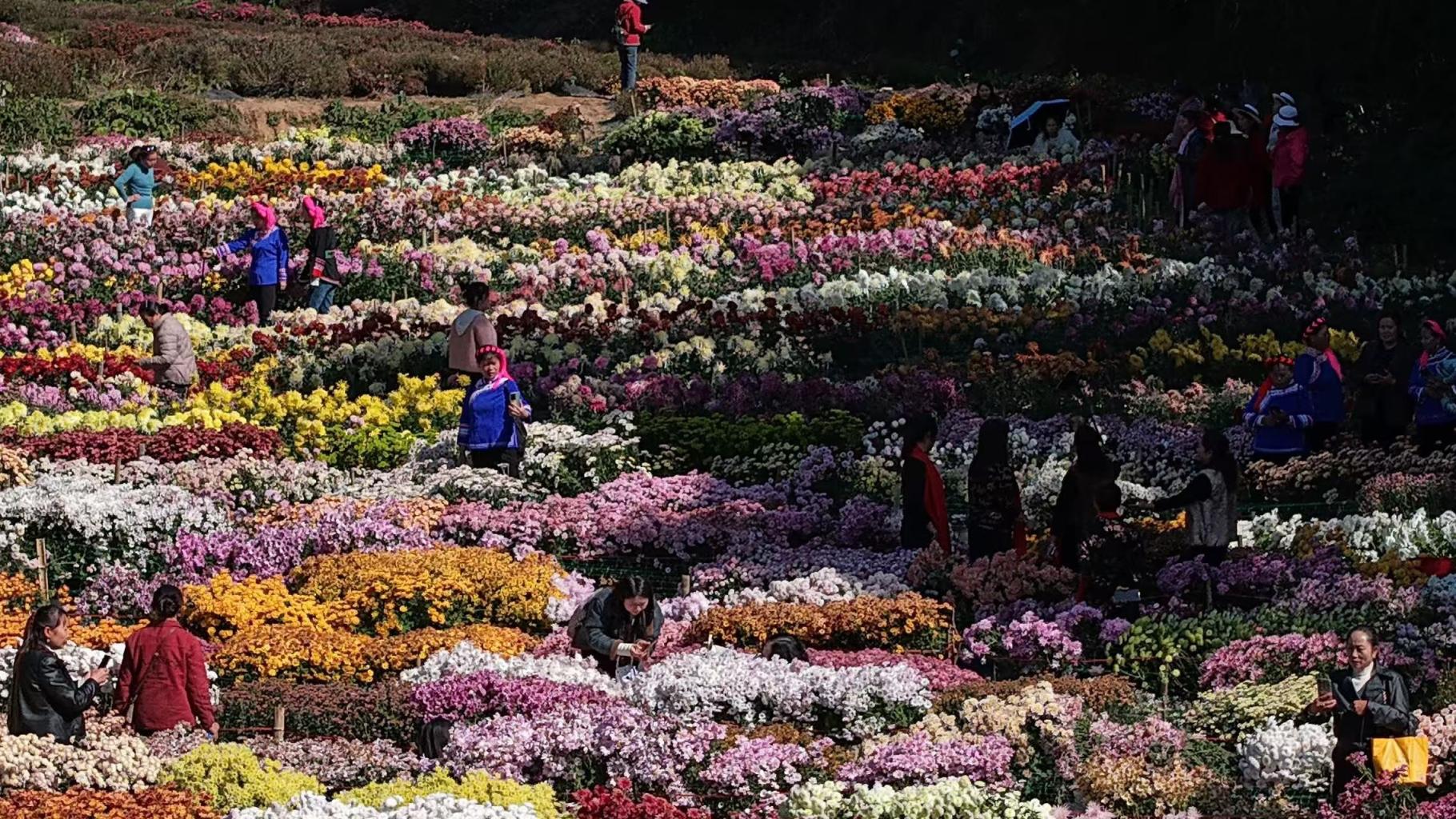 奶白等色彩交织成大地调色盘,花期持久,初冬仍能赏绝美花景;